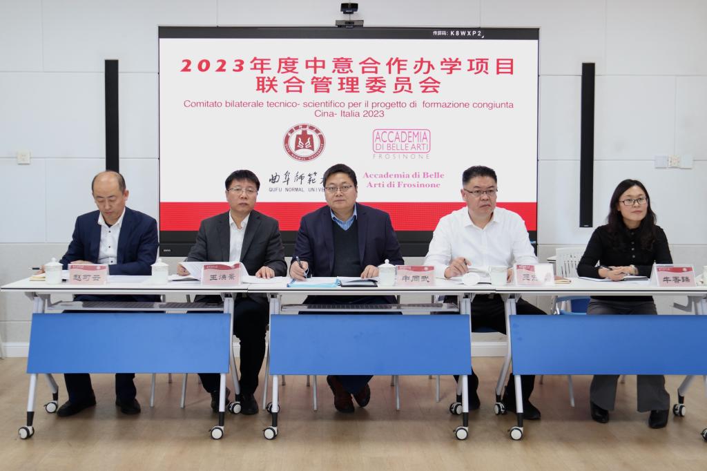 胡凡刚在致辞中对弗罗西诺内美术学院的各位同仁表示感谢,并希望通过本次会议为项目运行中遇到的问题商讨切实可行的解决方案,以确保项目可持续、高质量发展。弗罗西诺内美术学院校长罗莱妲娜·雷阿介绍了弗罗西诺内美术学院的基本情况,并表示十分期待中国学生的到来。李海龙介绍了数字媒体艺术专业中外合作办学项目目前取得的成果与发展情况。王焕景强调双方教学应及时更新教学内容,保持教学的吸引力与前沿性。此外,双方就相关业务联络人、项目联合管理委员会成员调整、项目评估、教学管理等事宜进行了充分讨论,并就师生交流和科研合作进行了沟通。
