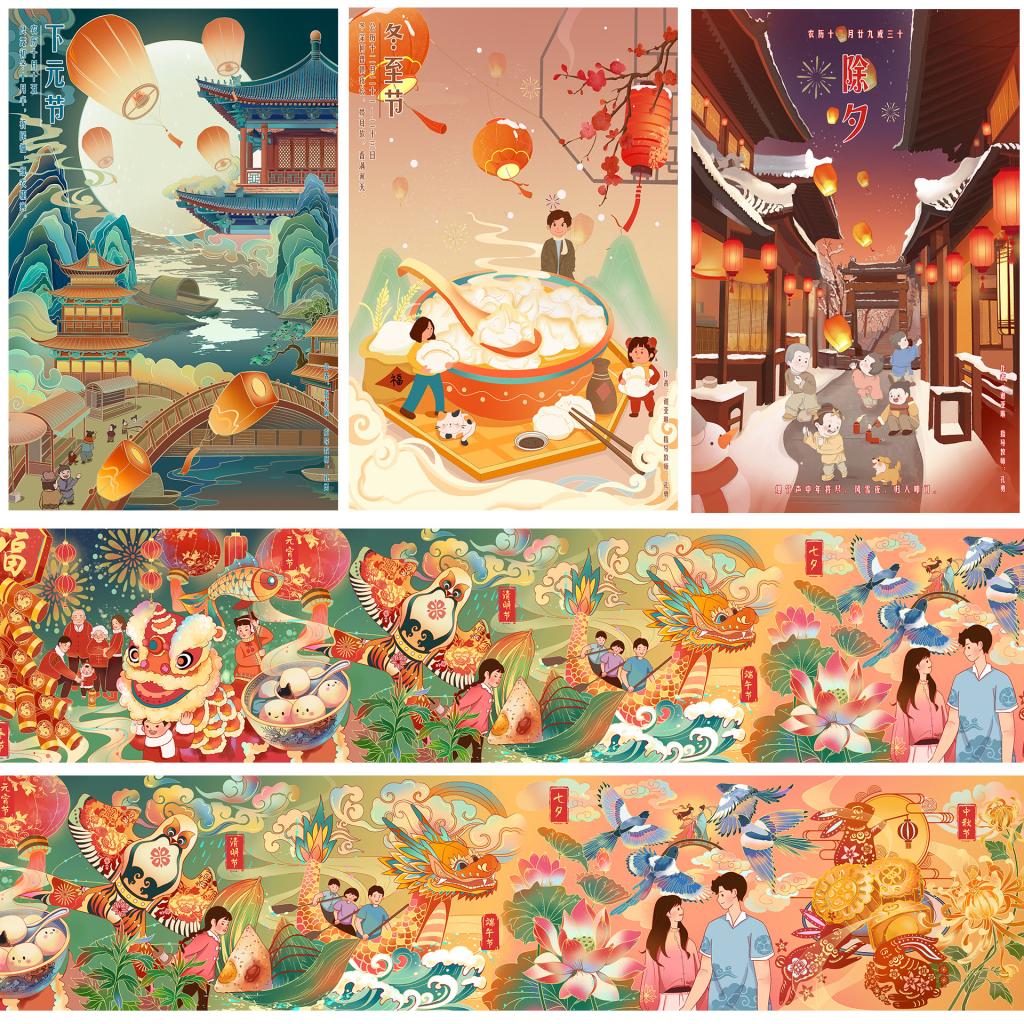 为进一步传承中华优秀传统文化,挖掘中国传统节日内涵魅力,近期,传媒学子以“绘传统节日历久弥新 展青年担当薪火相传”为主题,选取春节、元宵节等十五个中国传统节日进行系列原创数字插图作品创作。本次活动由暗网禁区